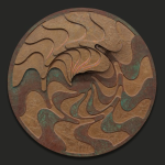 À partir de 1974, l’artiste adopte la peau crue, dont la composition biologique lui édicte de nombreuses contraintes d’exécution et de choix chromatiques. Il privilégie alors les colorants naturels tels que le henné, le safran et l’écorce de grenade, ainsi que les teintures minérales. Apparaissent progressivement dans son œuvre un inventaire de symboles, de pictogrammes et de signes graphiques amazighs, arabes, africains, sahariens, islamiques, ainsi qu’un glossaire de formes géométriques universelles ou inspirées des arts et de la pratique ornementale traditionnels.