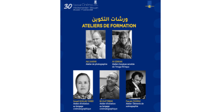 Au programme notamment «Pour une approche sensible de l’analyse filmique» animé par Ali Sekkaki (conseiller culturel et intervenant proche des activités pédagogiques du festival), atelier de photographie dirigé par Jaafar Akil, professeur d’enseignement supérieur en photographie/photojournalisme à l’Institut supérieur de l’information et de la communication (ISIC), «Éléments de scénographie» (animé par Pascale Toureau). Le FCMT poursuit ses actions sociales par des projections et ateliers à la prison locale de Tétouan. Sont prévues les projections de Ali Zaoua et du film égyptien Mawata, suivies d’un atelier artistique conduit par Farida Bouazzaoui (actrice et plasticienne).