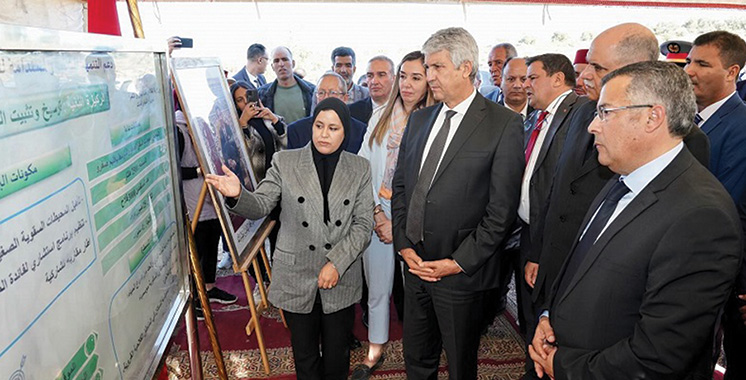 Dans la commune d’Azzaba, le ministre a pris connaissance du projet de réhabilitation des périmètres de petite et moyenne hydraulique (PMH) et donné le coup d’envoi au démarrage d’une tranche de réhabilitation des séguias dans le cadre du programme d’appui au développement inclusif et durable des zones agricoles et rurales. D’un investissement de 16 millions de dirhams, le total des linéaires à aménager pour la période 2024-2027 est de 30 kilomètres sur une superficie couverte par le projet d’environ 2.500 hectares au profit d’à peu près 3.000 agriculteurs.