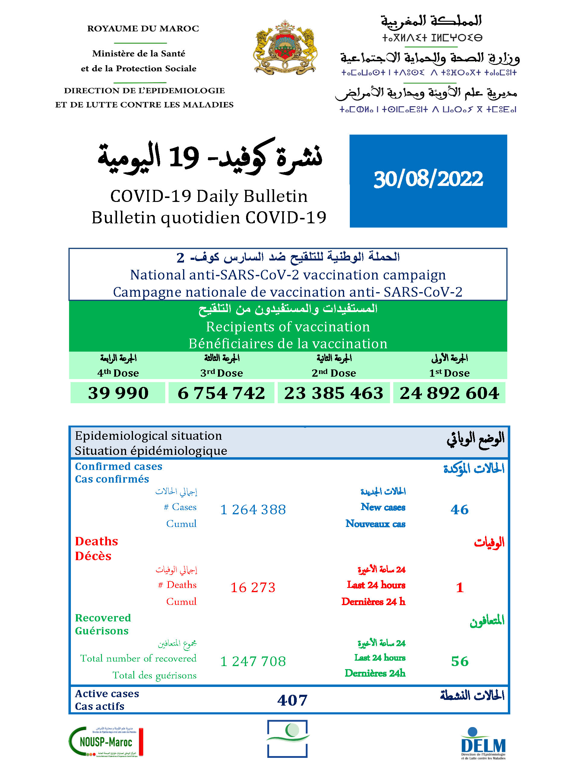 56 guérisons soit un cumul de 1 247 708 à ce jour.