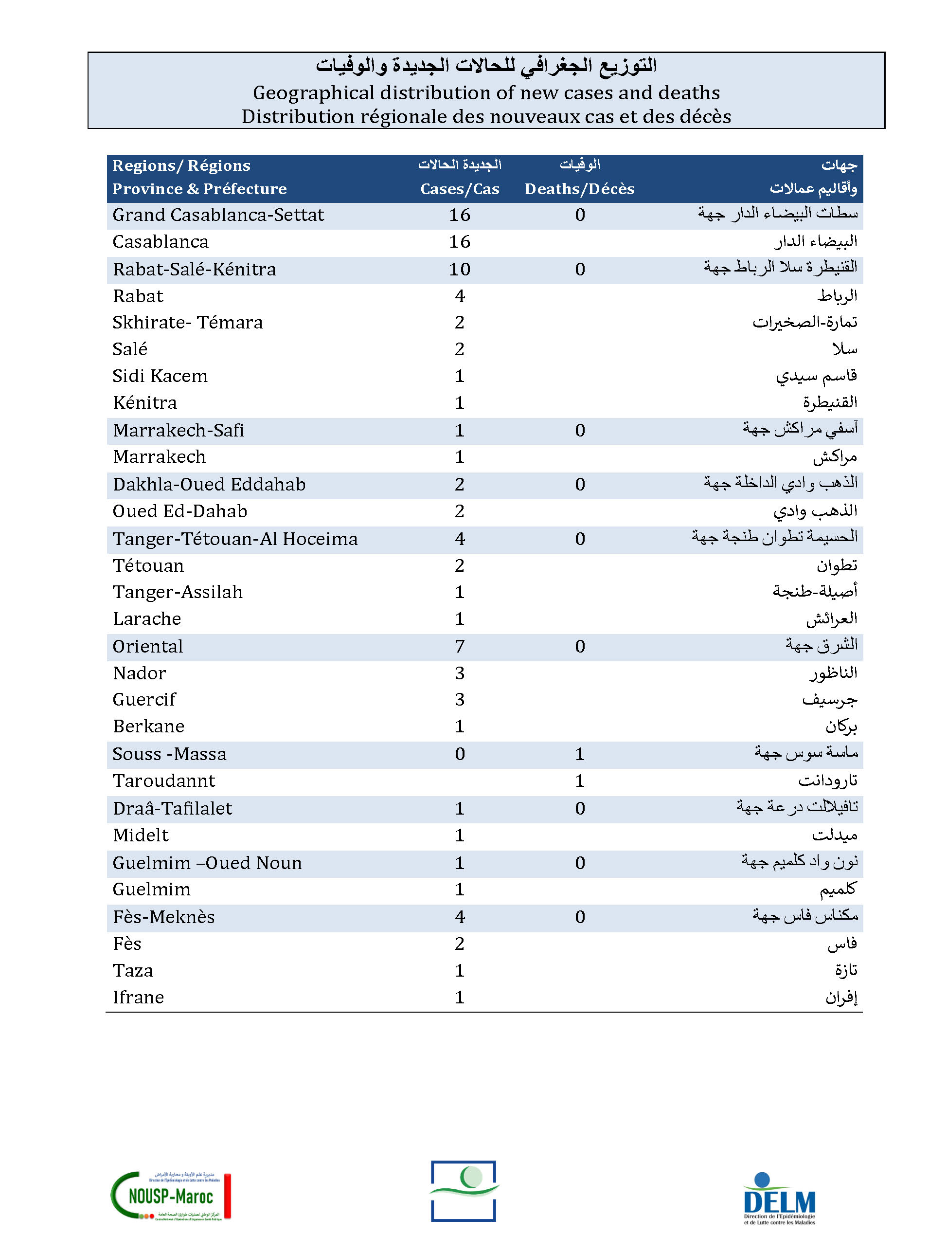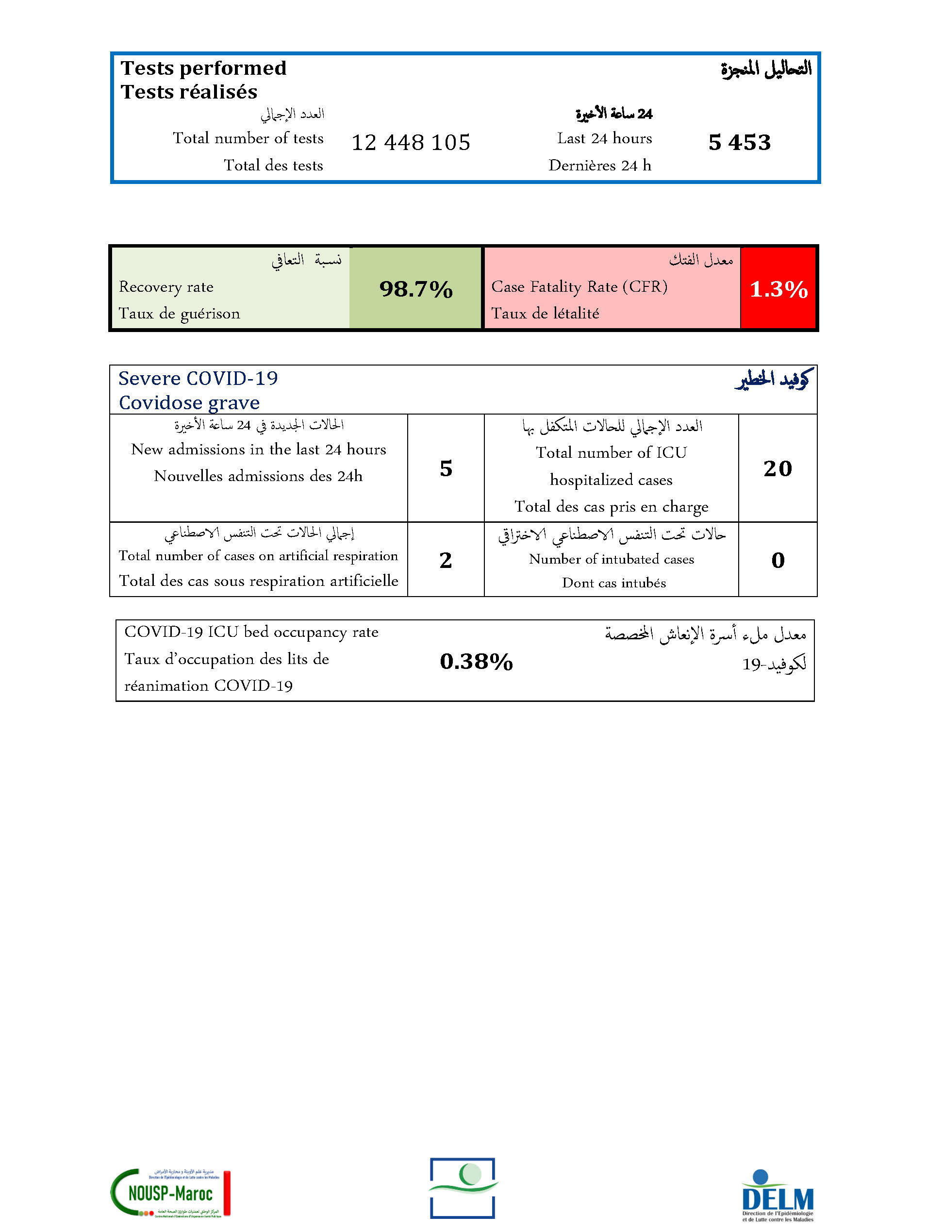 Un nouveau décès soit un cumul de 16 273 à ce jour.