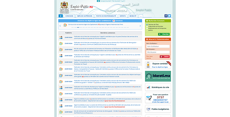 Depuis le lancement du site Emploi-public.ma jusqu’au 21 juillet 2024, 25.645 concours ont été diffusés. La Direction générale de la sûreté nationale ( DGSN) et le ministère de l’agriculture sont actuellement les principaux recruteurs.