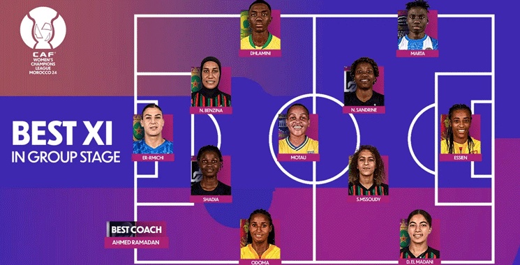 À l’issue des phases de groupes de la Ligue des champions féminine de la CAF Maroc 2024, le Groupe d’Étude Technique (TSG) de la CAF a révélé les Onze meilleures joueuses ayant brillé par leurs performances exceptionnelles.